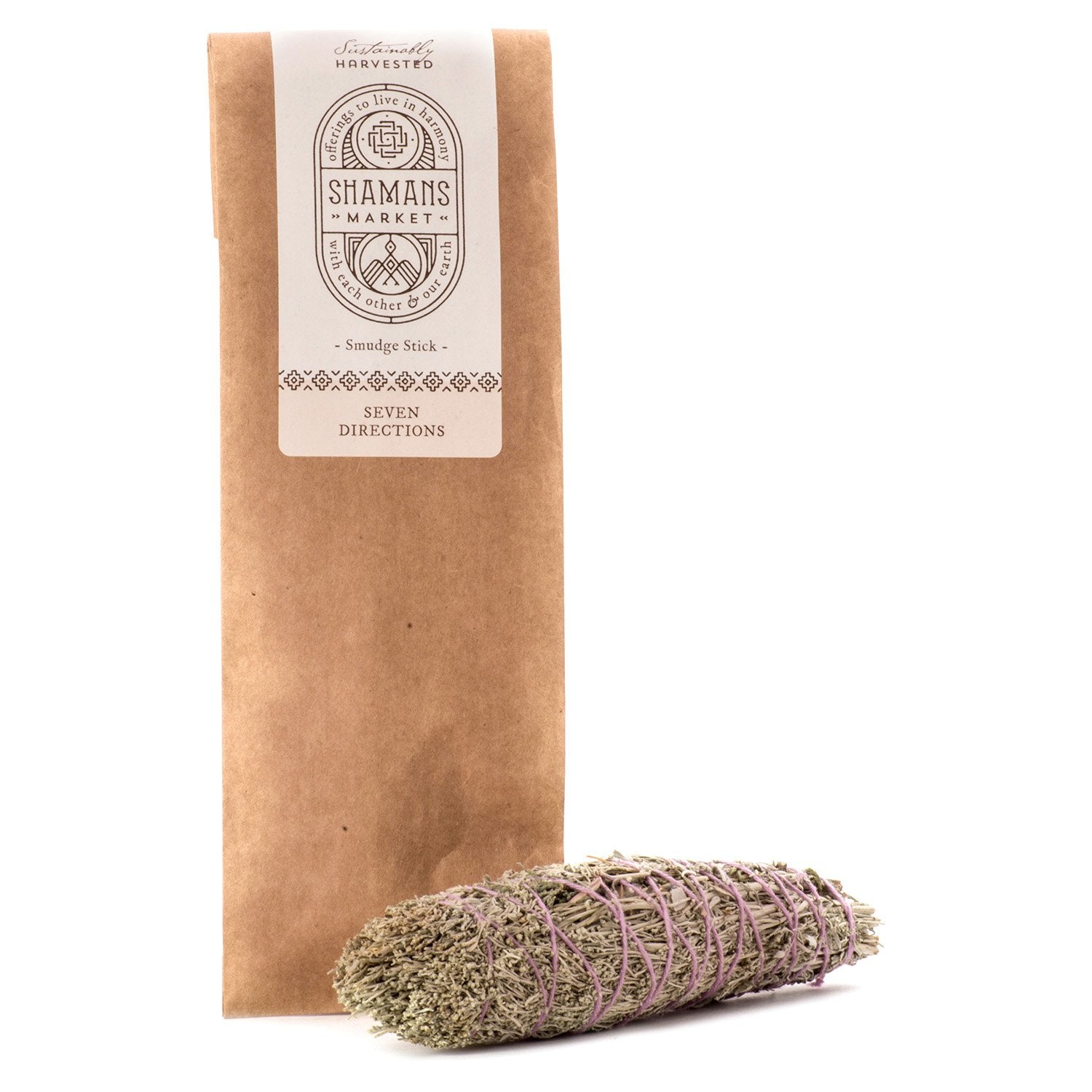 The sacred herbs sage, cedar, lavender, white sage, sweetgrass and copal honor and invoke The Seven Directions. Bring your prayers from the East, South, West, North, Father Sky, Mother Earth and the depth of your soul to the Creator with the aromatic smoke from these smudge sticks. The lovingly wrapped, 7-8 inch smudging sticks are not only pleasing to our senses and to all creation. They are also a powerful mix of sacred herbs and copal resin designed for Native American blessings and ceremonies