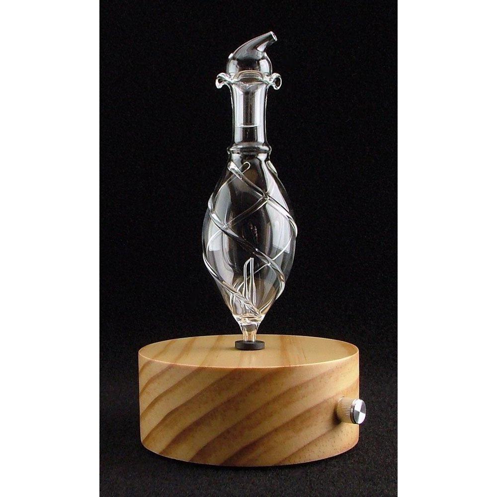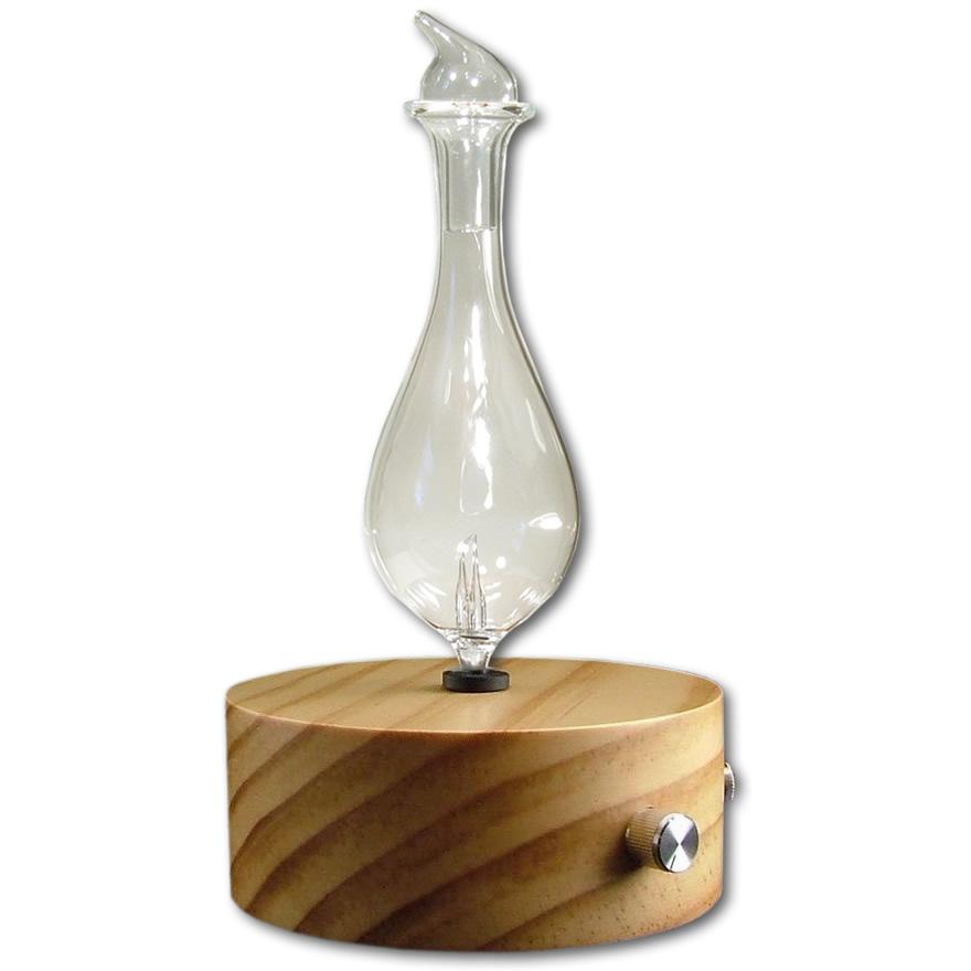 This ArOmis aromatherapy diffuser is a professional, therapeutic grade cold air pressure nebulizer designed with serious aromatherapy practitioners in mind. This base is made from beautiful wood in the straight line (Solum) shape in light blond (Lux) color. The bottles are made of clear glass and three styles are offered: The Merus with its smooth glass with gentle oval bowl tapering into a narrow neck with a flared rim on which sits its dedicated omni-directional cap; the Telum, which is a shorter version of the Merus with a uni-directional cap; and the stunning Vitus with artistic glass trails over its body and scalloped rim with omni-directional cap. The bottles fit into any color/style base.These units use no heat or water to vaporize oils, only 100% pure essential oils. They are designed for indoor use and are sold with electric AC power cord.