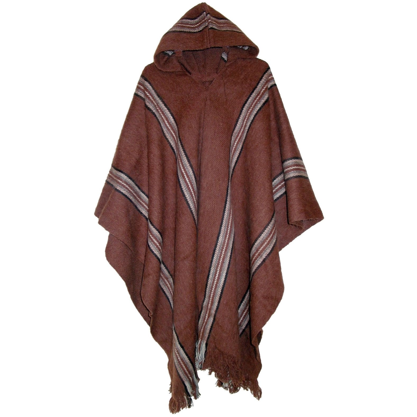 Named for the guardian mountain of La Paz, this poncho made especially for large people. The garment is made from alpaca and synthetic wool and is lightweight and comfortable even though it’s quite warm. Rely on this garment to keep warm in cold weather. The four stripes are a classic feature of these ponchos woven in a rustic loom with extreme attention to detail. Made in Bolivia. See how we measure our ponchos below.