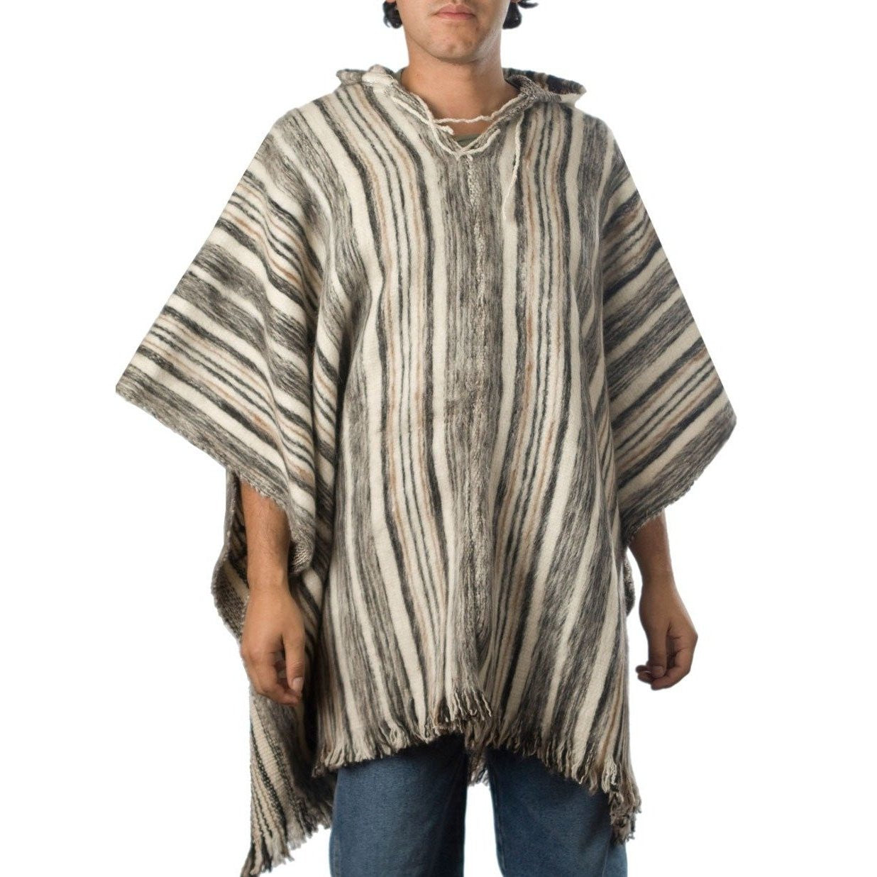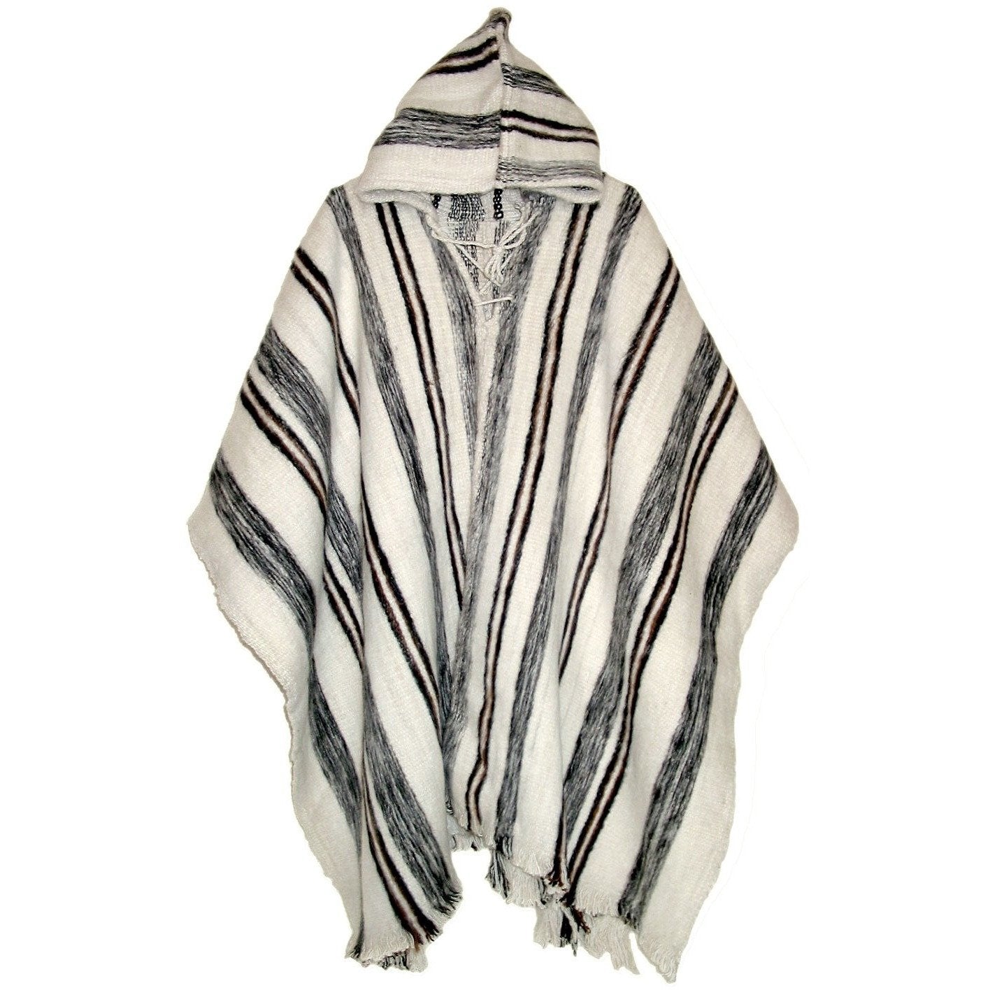 Named for a Peruvian mountain, this poncho is born from spinning sheep's wool and weaving on a loom. All the work is done by dedicated Bolivian hands, bringing you an excellent poncho, guaranteed to keep out the cold. Let yourself be carried away by the mysticism of the Andes, while affirming your own personality with this unusual garment. Striped poncho has a hood and a drawstring neckline. Made of 100% sheep's wool. Choice of sizes. See measurements in long description.