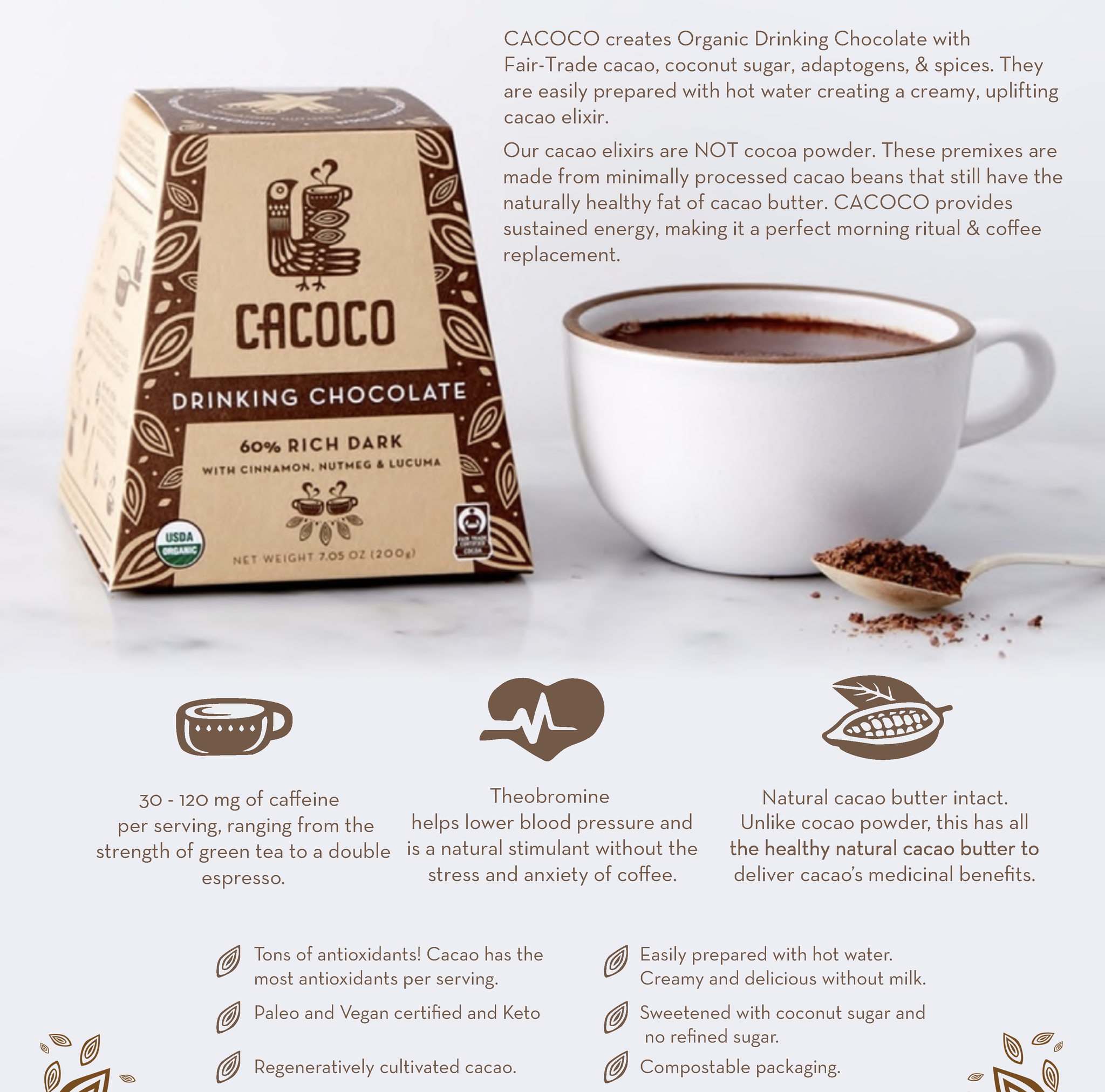 Enjoy as a hot or chilled drink, as a superfood mocha, in smoothies, as a topping on oatmeal & grain-free granola or by the handful. Get creative!