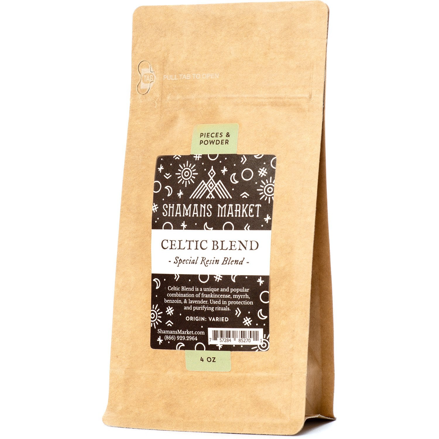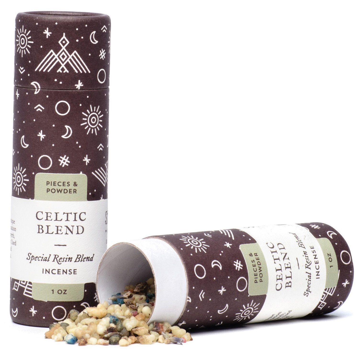 There is no gold, but frankincense, myrrh, benzoin and lavender make up this wonderful resin burning incense mix known as Celtic Blend. Used for a variety of purposes, light a piece of charcoal and drop your resin granules on it. When they begin to smolder, they release their wonderful fragrance. Celtic Blend is said to be used for cleansing, purification and healing. Use it during your meditations too. In three sizes: 1 oz tubes and 4 oz or 1 lb bag.