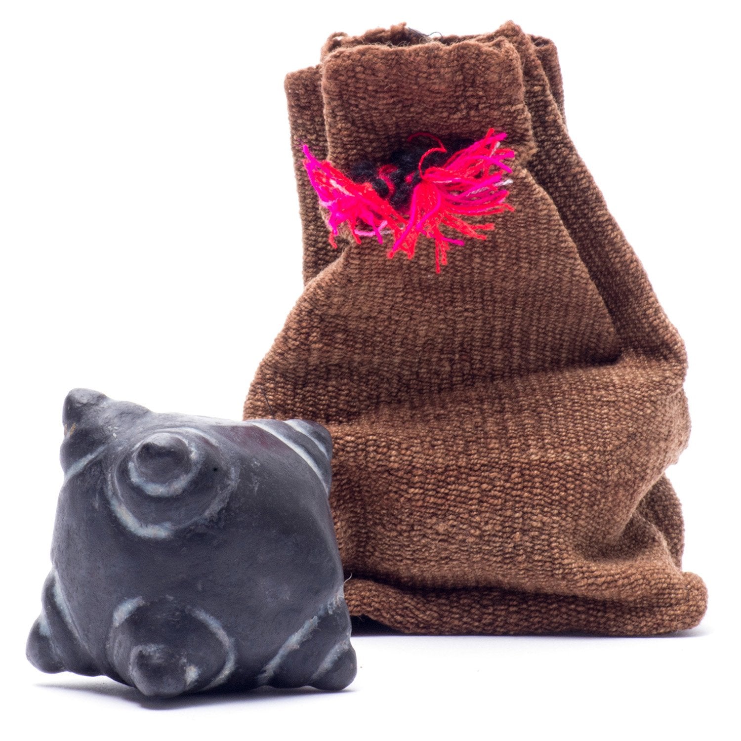 Our seven point chumpi stone is patiently and skillfully carved from what the people of Peru call "meteorite" or Hiwaya stone. Physically this stone is very heavy and energetically very alive. The seven points represent the position the stone takes on a shaman's sacred mesa cloth (in relation to other stones), and in turn, the specific mountain of the twelve mountains which surround Cusco. The mountain associated with 7 is Apu Machu Picchu. Comes in textile drawstring bag (color may vary from image). Hand crafted in Peru.