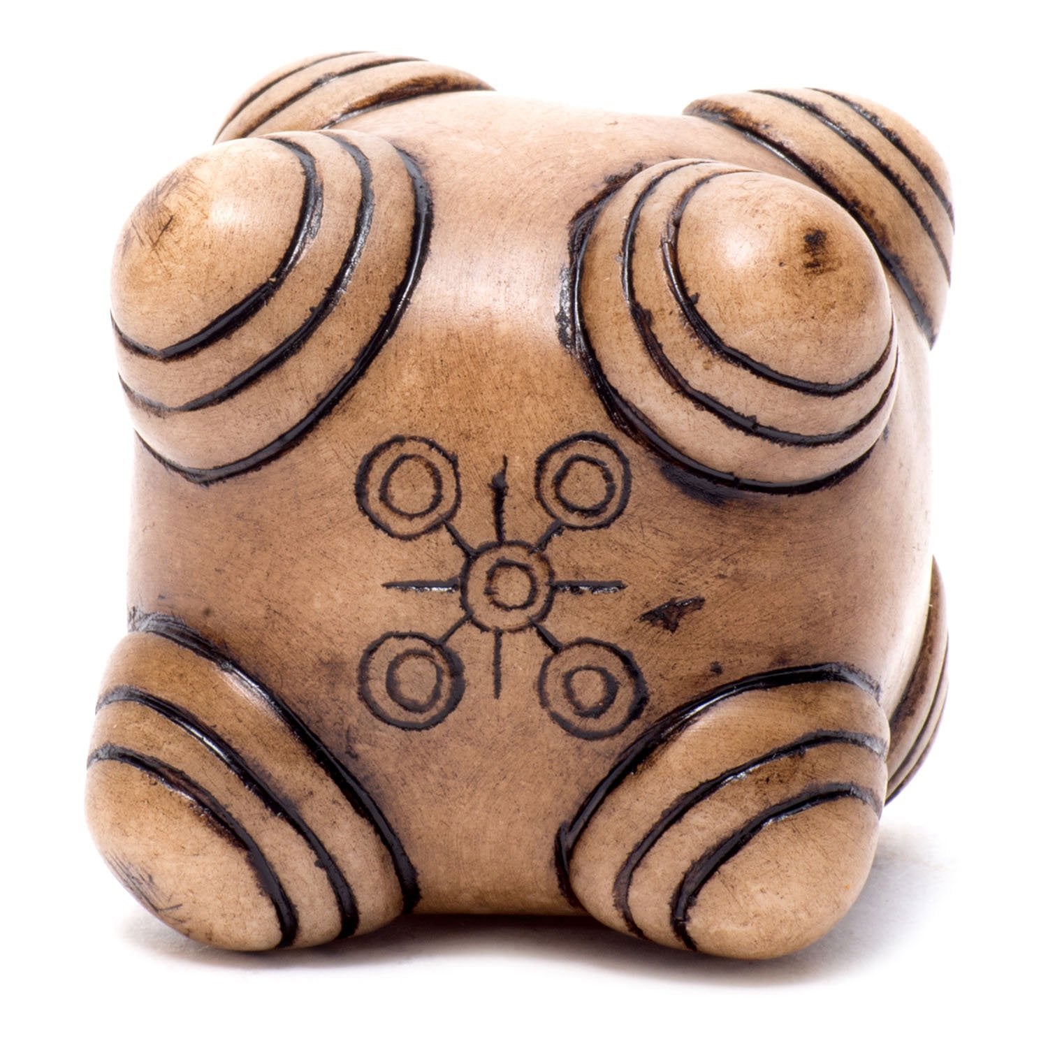 The set of 12 Peruvian Chumpi Stones are associated with the 12 mountains in the Sacred Valley near Cusco in Peru. These delicately hand-carved, alabaster-like stones are used by some shamanic practitioners in their ceremonial healings. Each stone measures approximately 1.25 - 1.5 inches in size. Each features a delightfully detailed rendering of a traditional Peruvian motif carved into its surface. Use in ceremony or as artes on your altar cloth / mesa. Comes with beautiful mestana (each cloth is unique and will vary from the cloth shown), beaded watana (tie) and rattle.