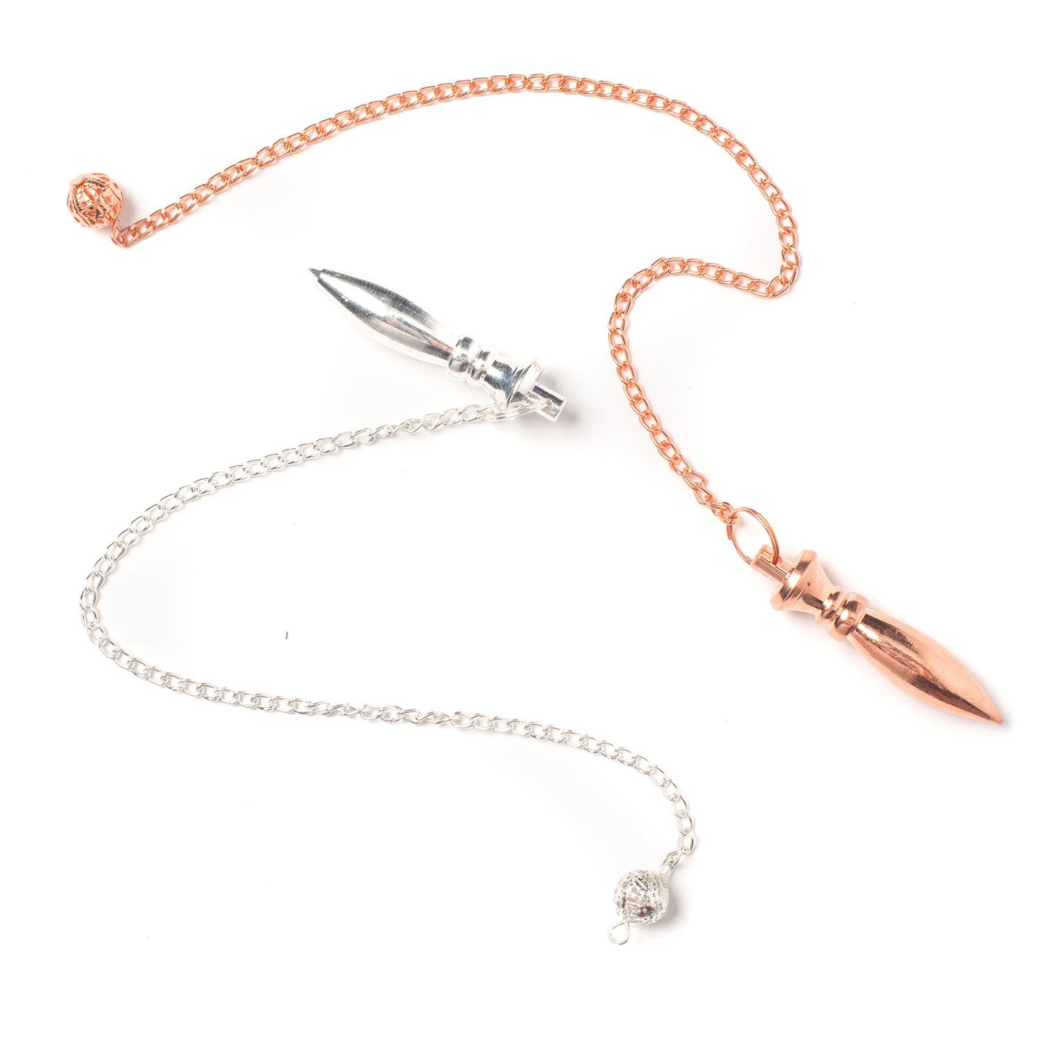 A dowsing metal pendulum made of trustworthy metal. It acts as a good conductor of your subtle energy. Choose between silver plated or copper plated.