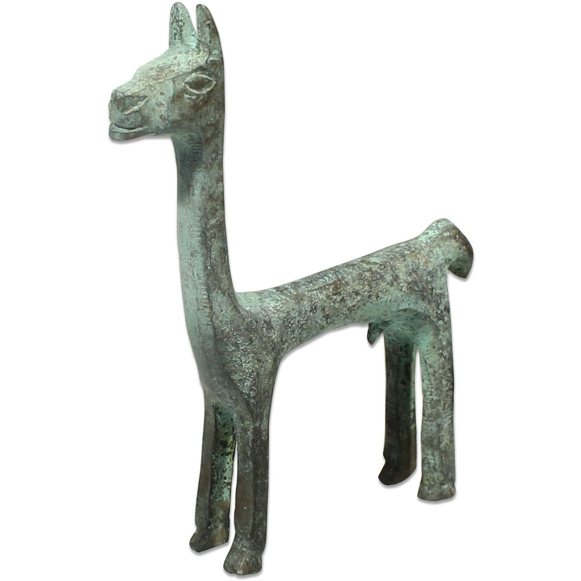 The llama is the most cherished animal of Peru and the ultimate symbol of service. The Inca deity Urcuchillay was depicted in the form of a multicolored llama. This solid brass stylized statue of the standing camelid is a great arte for your altar or mesa. Adopt this llama as your own symbol of service. Choice of height sizes.
