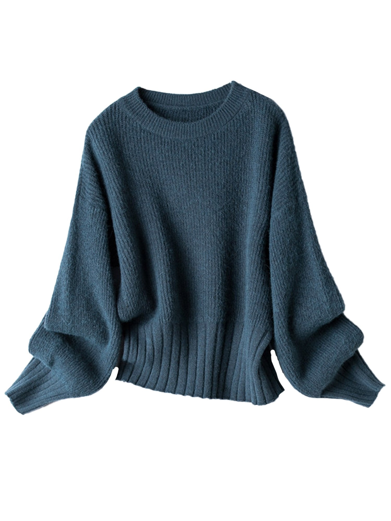Goodnight Macaroon 'Lowa' Round Neck Ribbed Short Sweater (2 Colors)