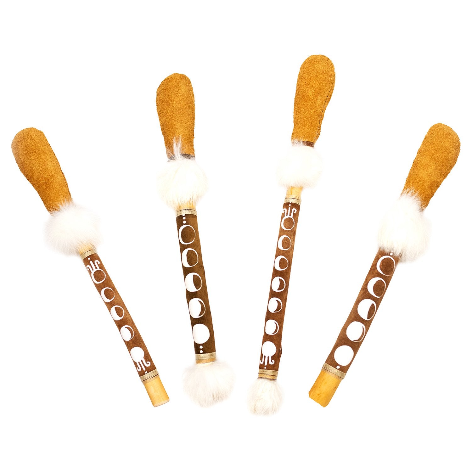 A drum beater infused with moon energy and intuition. A simple and strong drum beater made of raw leather and wood gathered form Julie's land. The beater is filled and tightly packed with natural wool. Filled to be strong and yet enough supple for a nice rebound when you play.
