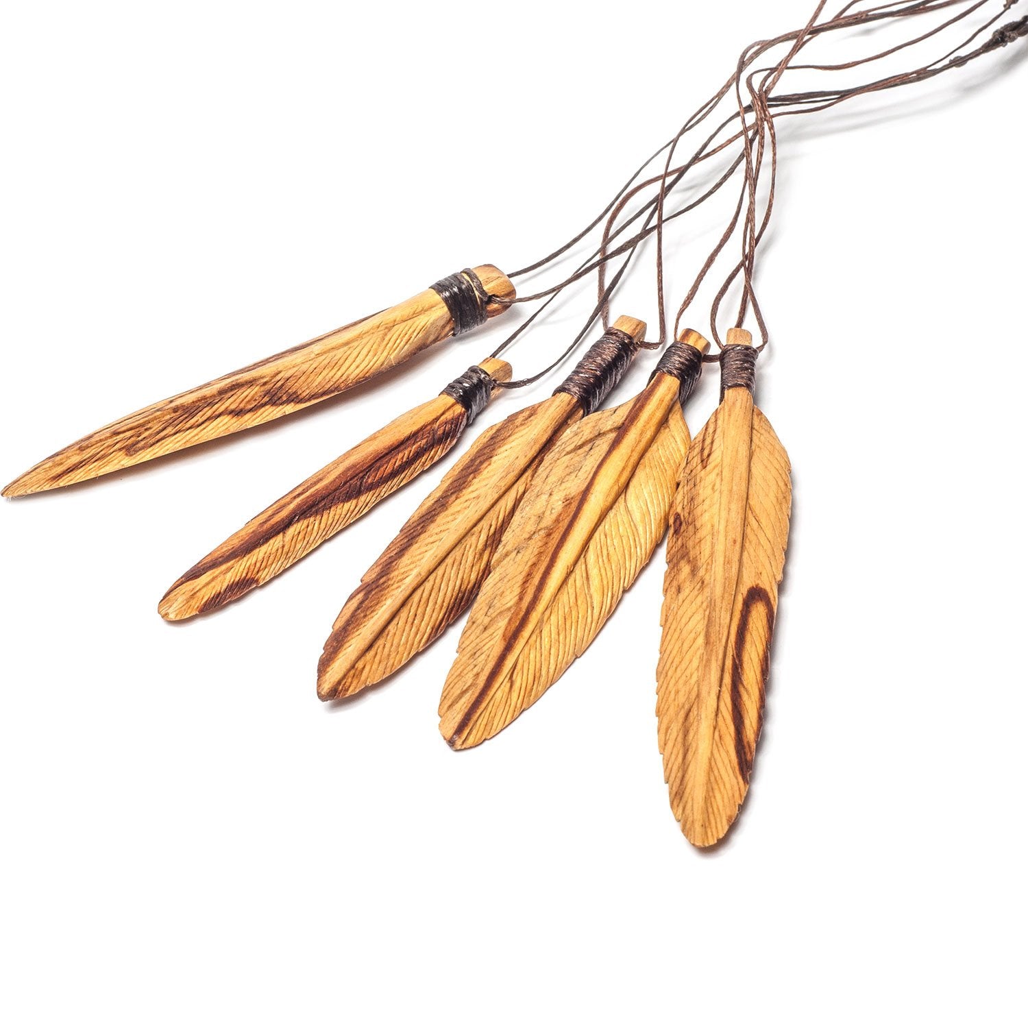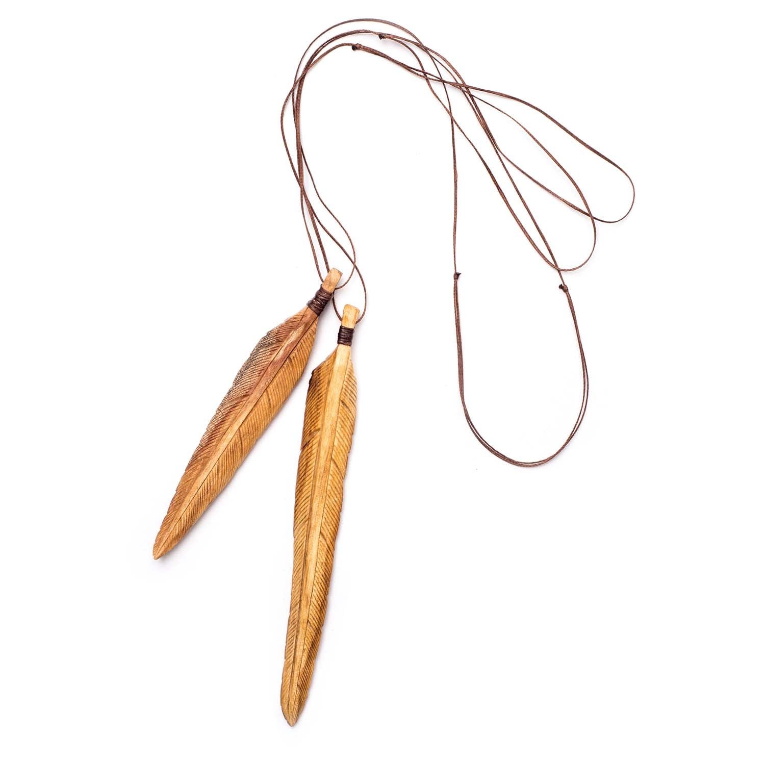 Hand carved Palo Santo wood feather necklace is said to protect you and give you power. Its sweet strong smell will follow you and help you experience being in the here and now. Strung on an adjustable waxed cotton cord. Sizes vary due to hand carved nature.  Let us choose one for you. Hand crafted in Bali.